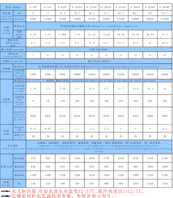化工行業用防爆冷水機參數